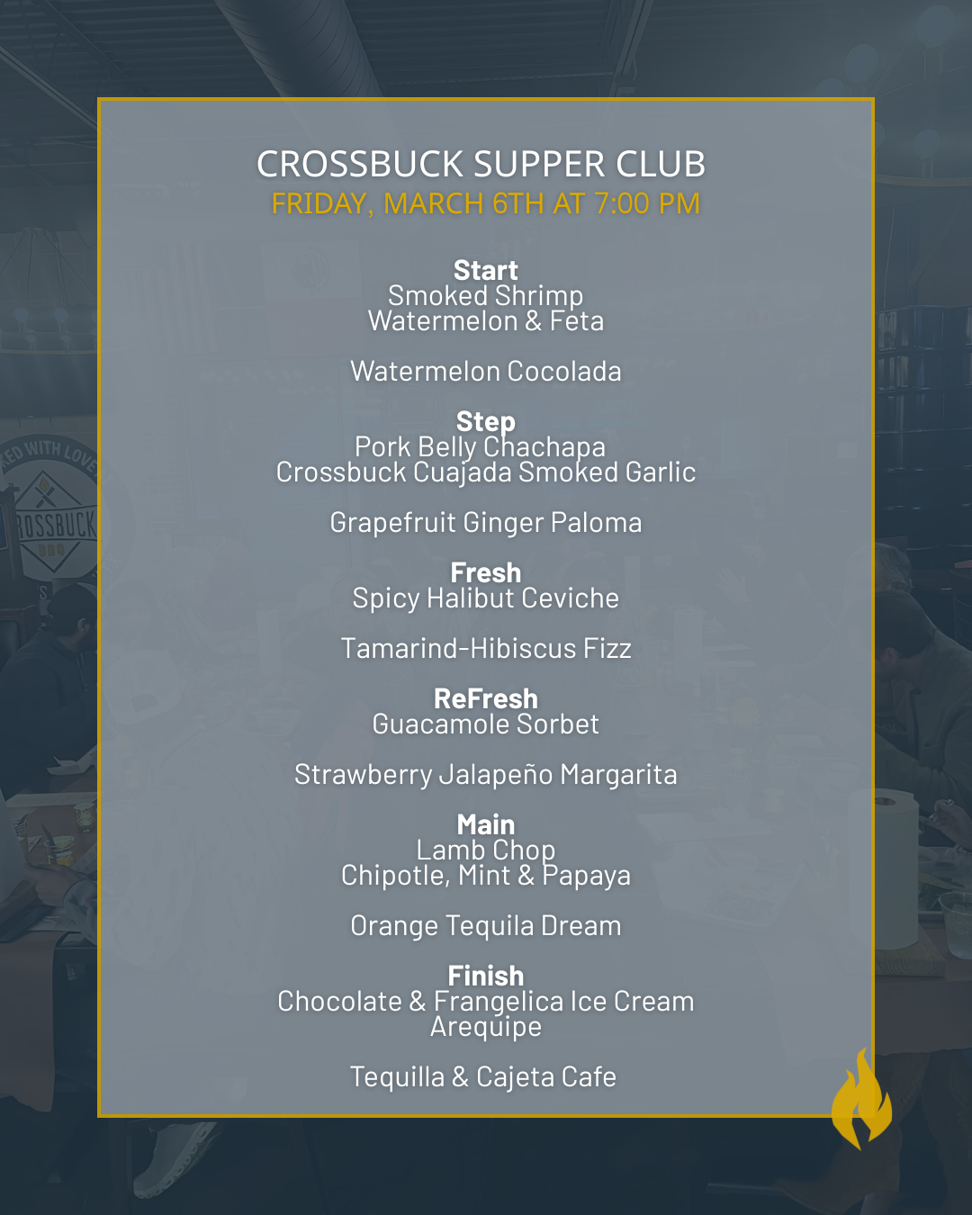 Our next Supper Club will be on Friday, April 10th - Stay tuned for more details, ticketing will open on March 8th!
